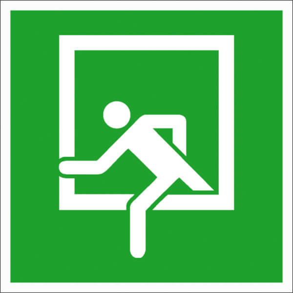 Notausgang rechts mit Zusatzzeichen – Richtungsangabe rechts